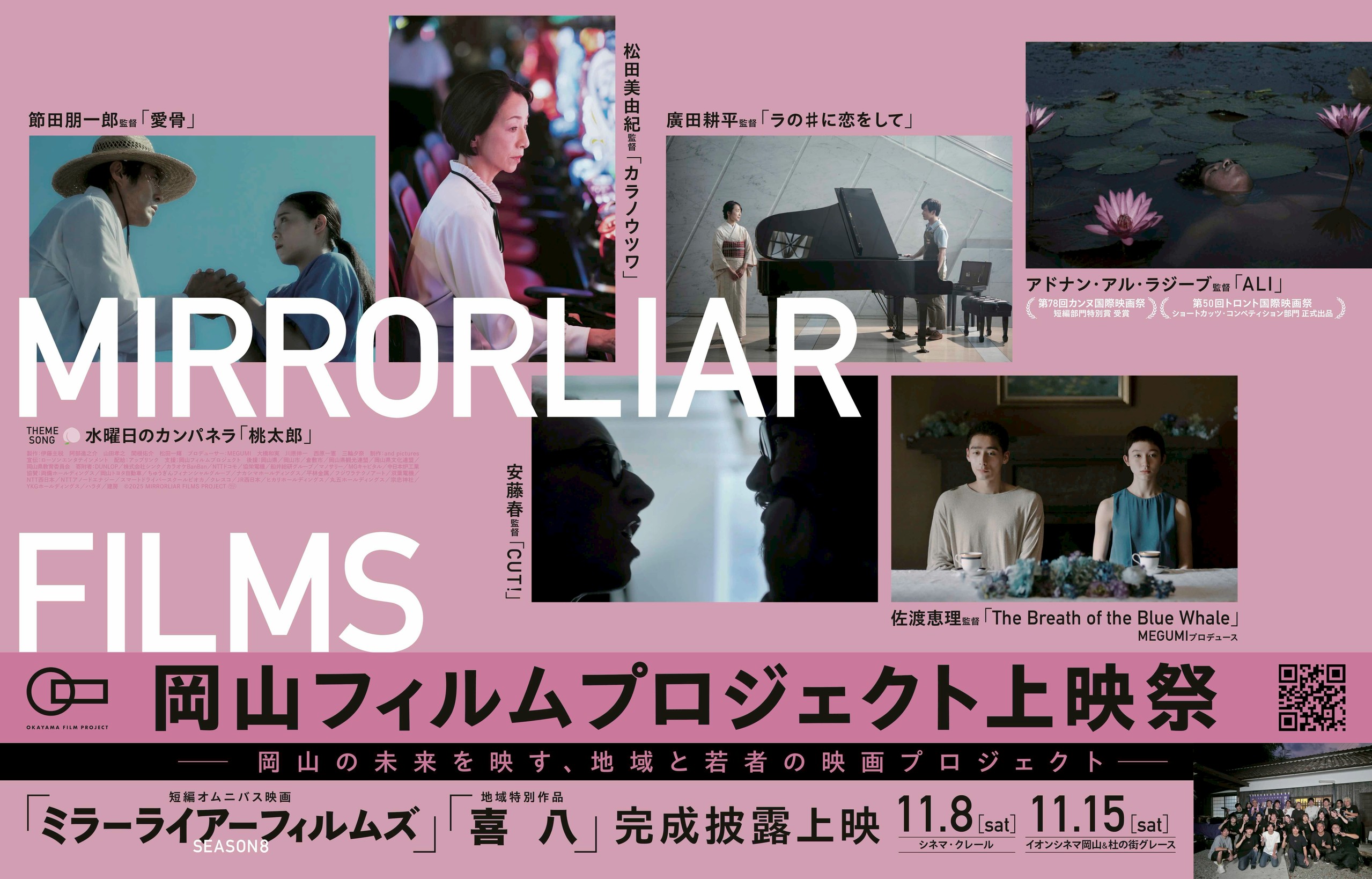 今回完成披露となる7つの短編映画のうち、MIRRORLIAR FILMS season8、松田美由紀監督の『カラノウツワ』、そして学生が撮影に参加した地域特別作品『喜八』について、撮影時の様子など詳しく語られています。また妹尾真由子さんは、岡山映画ロケの仕掛け人として過去にも岡山フィルムプロジェクトについて連載で取り上げていただいています。